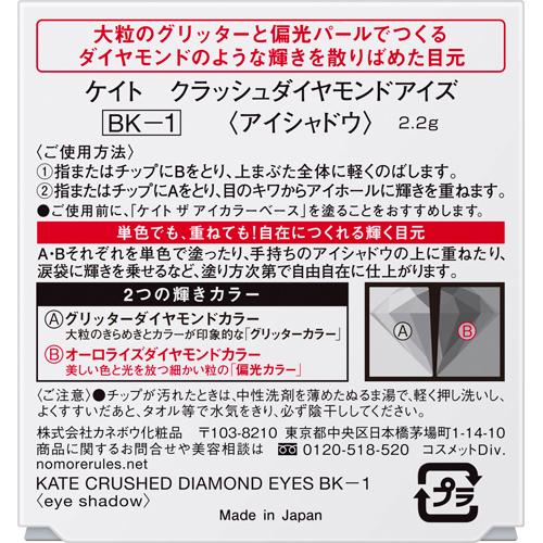 お店TOP>化粧品>メイクアップ>アイシャドウ>パウダーアイシャドウ>ケイト クラッシュダイヤモンドアイズ BK-1 (2.2g)商品区分:化粧品【ケイト クラッシュダイヤモンドアイズ BK-1の商品詳細】●大粒のグリッターと偏光パールでつくるダイヤモンドのような輝きを散りばめた目元。