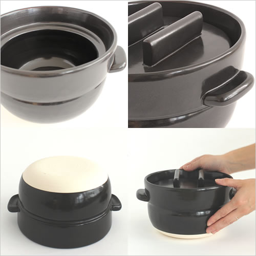 」 耐熱性に優れた萬古焼で作られた かもしか道具店のごはんの鍋。