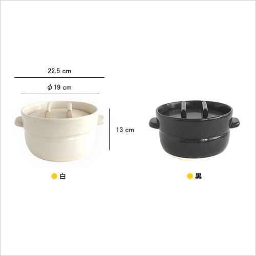 商品詳細 SPEC サイズ W22.5 × H13 × φ19 cm 素材 耐熱陶器 生産国 日本(三重県) 分量目安 お米540ccに対し水600cc(炊き時間:約15〜16分) 対応熱源 電子レンジ、オーブン、直火、食洗機:OK IH:NG ご注意 1点1点手作りの製品ですので、形状、色、質感等に若干のばらつきがございます。